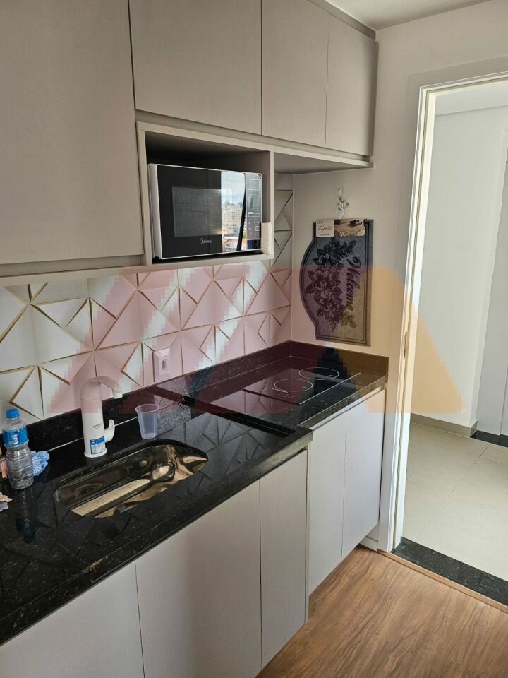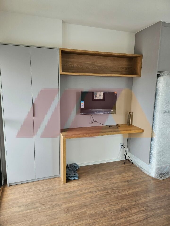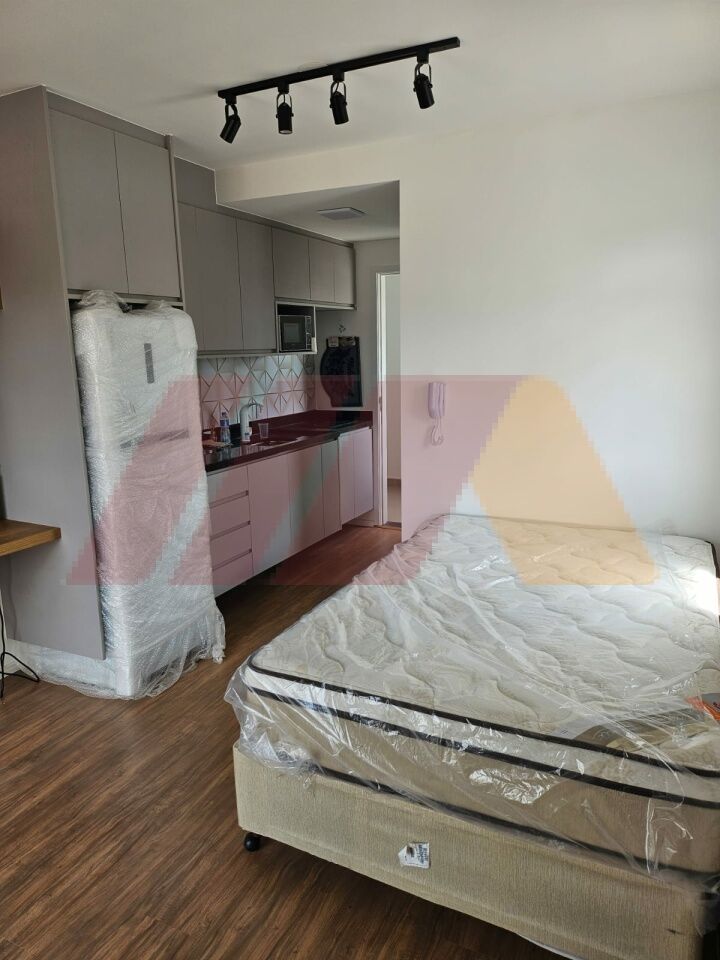 O Studio todo mobiliado com cama , eletrodomésticos novos , nunca foi usado.