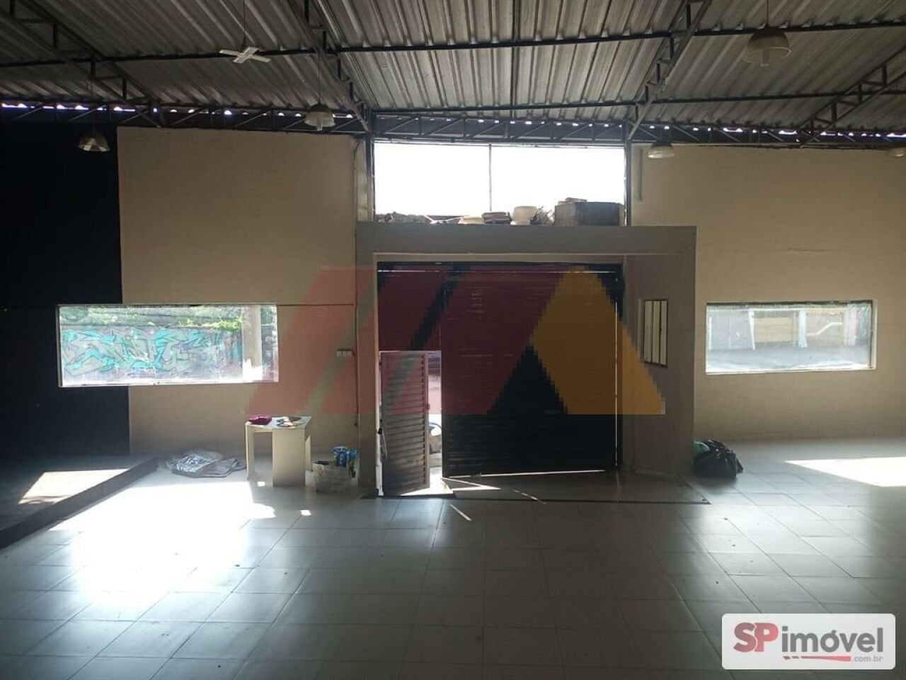 -Porta de aço que possibilita carga e descarga de pequenos caminhões